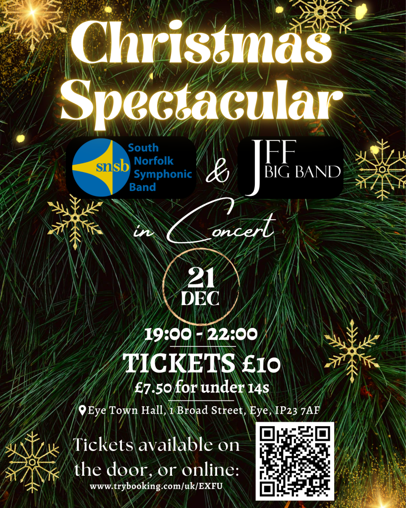 Please join us for our exciting joint Christmas Concert with the South Norfolk Symphonic Band (SNSB) and the Just For Fun (JFF) Big Band.